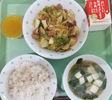 【今日の給食】天丼、磯あえ、赤だしみそ汁、牛乳