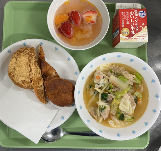 児童・生徒からのリクエストで揚げパンとサイダーポンチにしました。